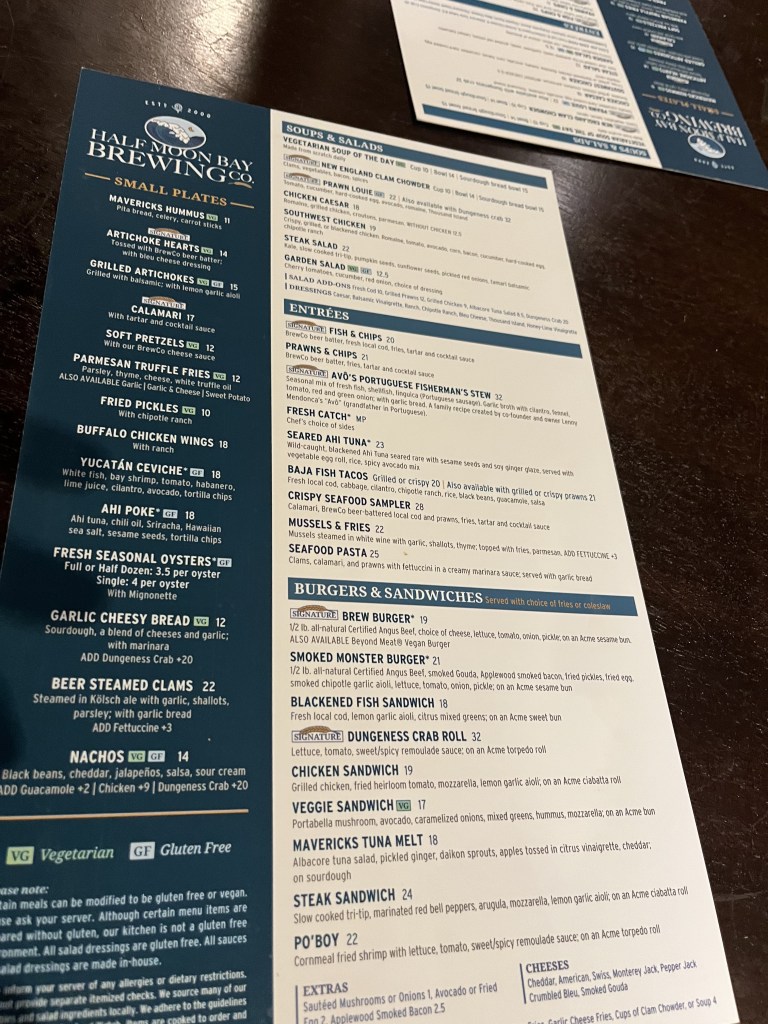 One great spot to visit is the Half Moon Bay Brewery. Situated with stunning views of the ocean, the brewery offers a plethora of beers and some fine dishes. The decor is impressive too, as is the seating arrangement. We tried the Calamari and the Clam Chowder.