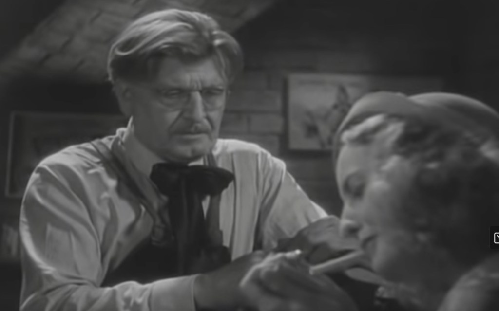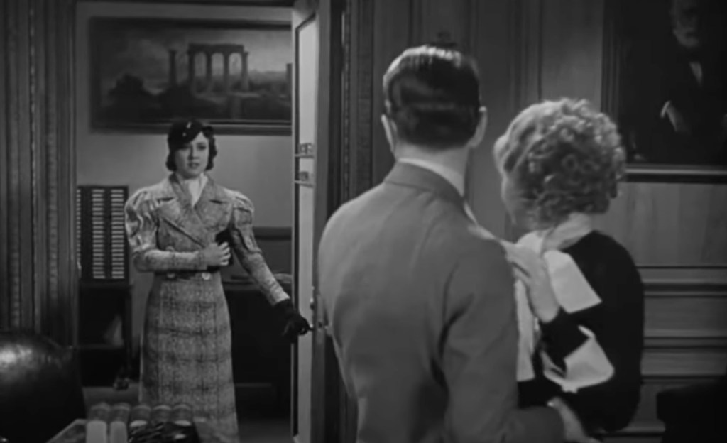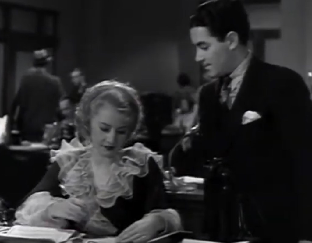 Lily flirts with a clerk, beckons him into an empty office, and does what she needs to do to get her first job at the bank. Lily then starts dating Jimmy McCoy (a young John Wayne), a low-level manager. Lily now steps up her game. She charms McCoy’s boss, Brody (Douglass Dumbrille), into the women’s restroom and has sex with him. Brody’s boss, Ned Stevens (Donald Cook), catches the couple in the restroom and fires Brody. Playing the innocent victim, Lily sheds crocodile tears, saying that it was the first time she had done something like this and that she is broke and knows no one in the city.