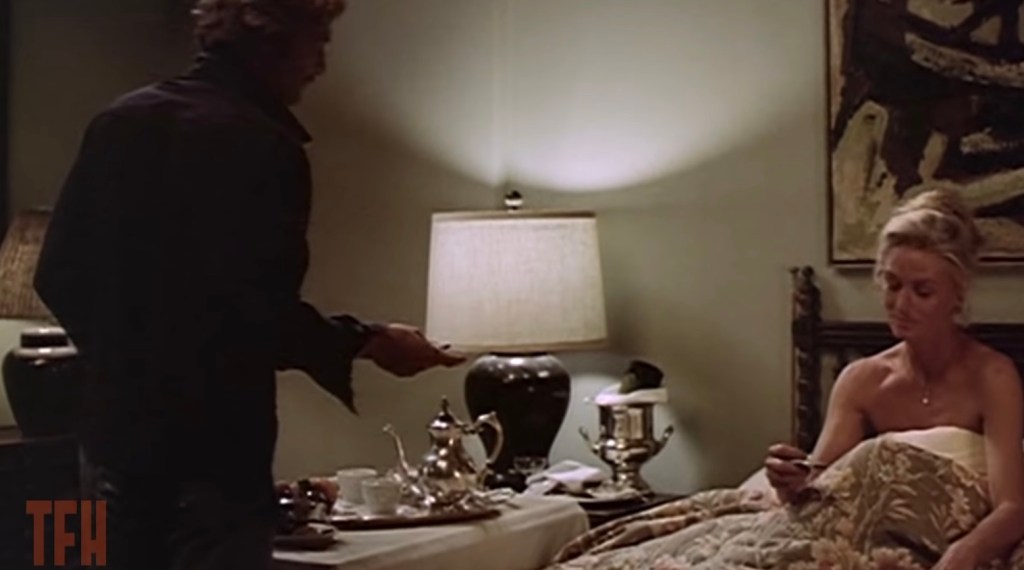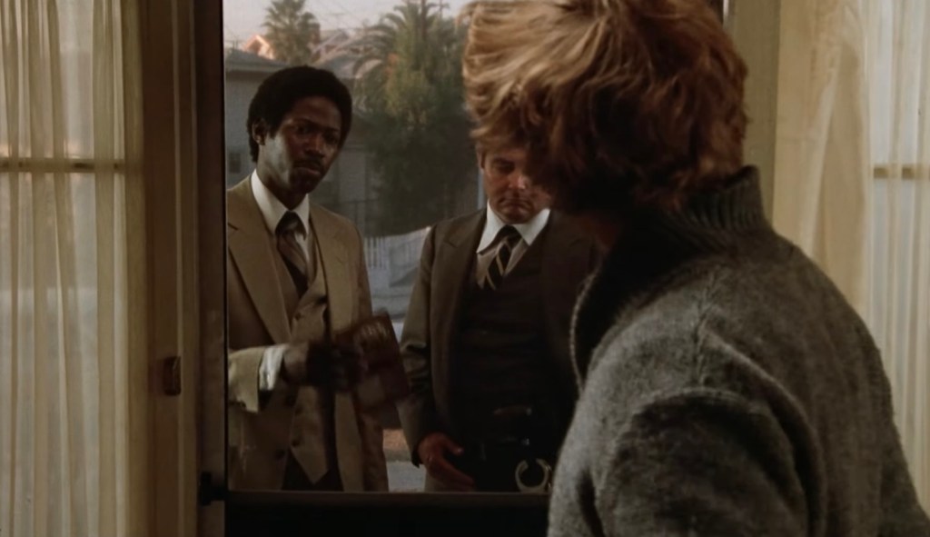 Cutter arrives at his house at daylight and asks Bone to stay for breakfast. The morning newspaper reveals that the corpse of a young woman was found dumped in a garbage can. Soon police arrive at Cutter’s home and take Bone to the station as he has been seen near the scene of the crime the previous night. While questioning Bone, the investigating officer brings in Valerie (Ann Dusenberry), the sister of the murder victim, to inflict guilt on Bone and convince him to share more of what he witnessed. The ploy fails, as Bone is skeptical as to what he actually saw. Bone is released.