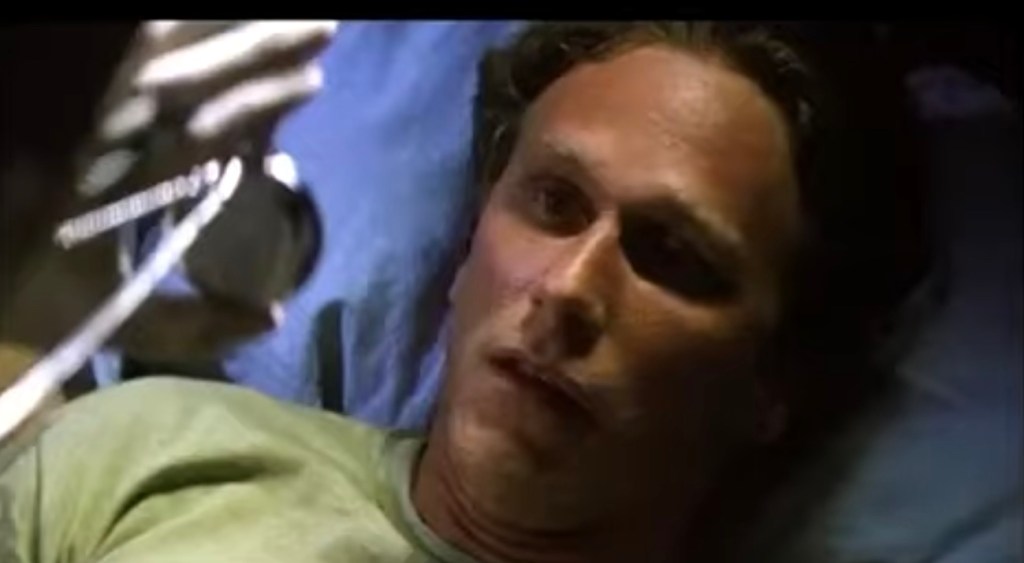Meanwhile, Lee Woods (Eric Stoltz), a mild-mannered cop, and his partner Alvin Strayer (Jeff Daniels), who has anger management issues, have been tasked with carrying out a sting on a Vietnamese massage parlor. Then there is Lee’s girlfriend, Helga Svelgen (Charlize Theron), who is planning to abscond with Lee once he has killed Roy and framed Lee.