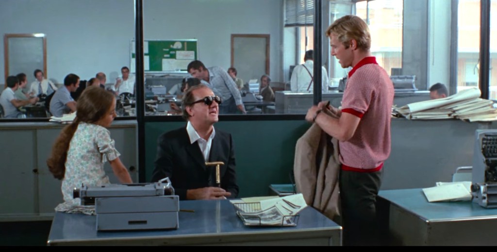 Lori and Franco visit Giordani at the newspaper office. Franco, who also used to be a journalist before losing his eyesight, suggests that the image in the newspaper is only a partial cropped version of a larger photograph. Giordani makes a call to the photographer and validates Franco’s observation.