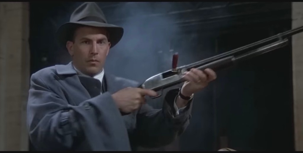 Of course, one cannot miss out on the movie’s stellar cast. Kevin Costner portrays Ness as a strong, determined Treasury agent and a devoted family man. Andy Garcia plays the young, motivated expert marksman Stone with energetic flair. There are two standout performances in the movie. Both men would win Oscars later in their careers.