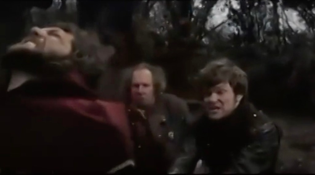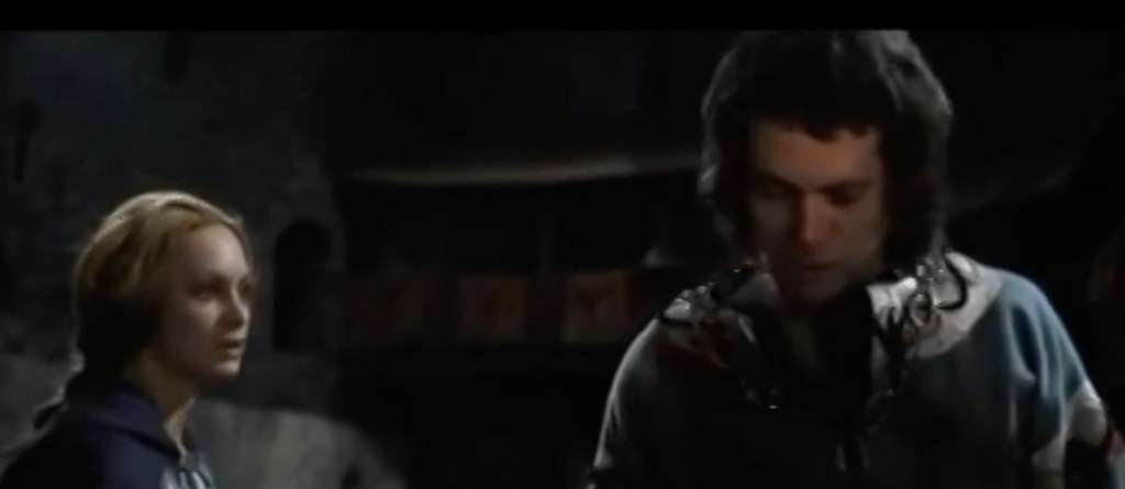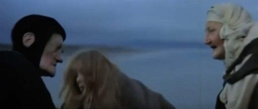 As Macbeth (Jon Finch) and Banquo (Martin Shaw) are returning home after battle, the witches appear before them. They inform Macbeth that he will be bestowed the title of Thane of Cawdor and will become the King of Scotland.