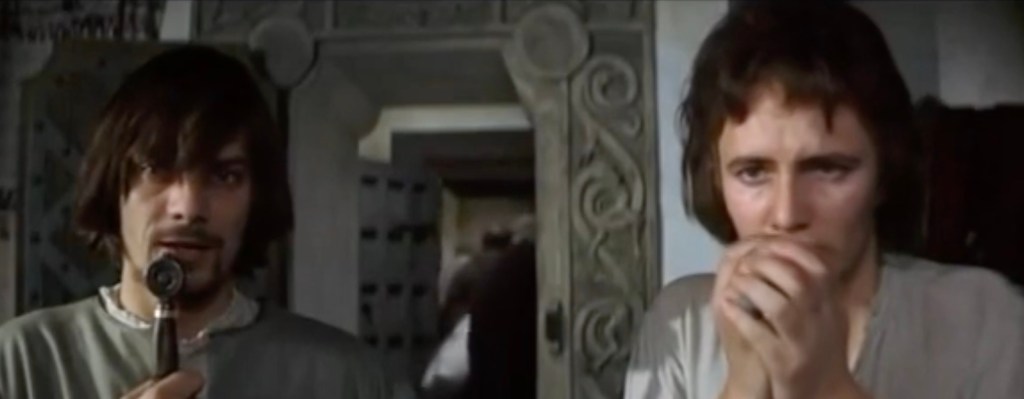 This adaptation of Macbeth is nowhere close to a magnum opus. With its limited budget, Polanski perhaps had to make a few compromises. The ensuing war between Macduff’s forces against Macbeth’s army is limited to a few scenes of Trebuchets throwing rock projectiles at the castle. Macduff and his men easily storm the castle with hardly any opposition and find a lone Macbeth.