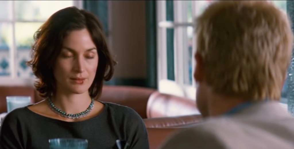 As the color sequences move backward, it is revealed that a waitress, Natalie (Carrie-Anne Moss), appears to be someone he trusts. The black and white sequences reveal that when Leonard worked as an investigator for an insurance company, he investigated a case involving Sammy Jankis (Stephen Tobolowsky), who also suffered from anterograde amnesia.