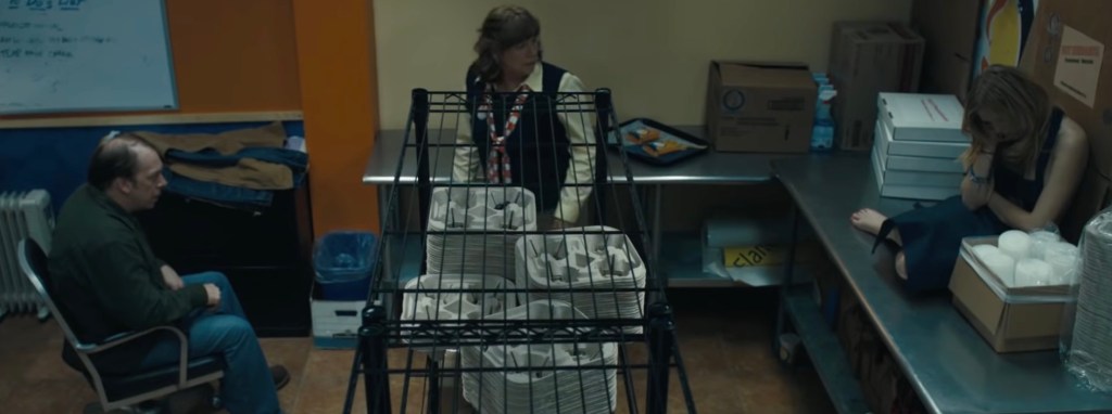 Upon Daniel’s orders for a strip search, Sandra has Becky take off her clothes in the presence of another female employee, Marti (Ashlie Atkinson). This search too comes up empty.