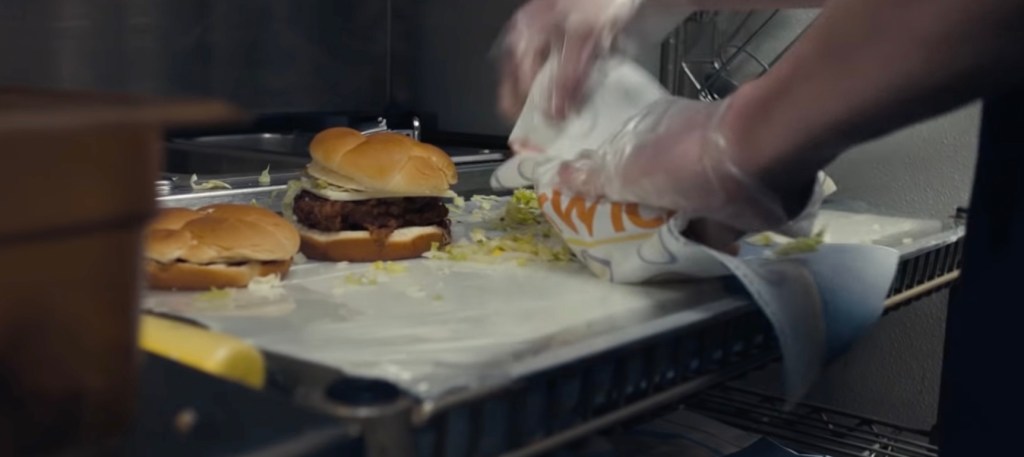 Sandra (Ann Dowd), a middle-aged manager, is under stress. She has received word that a mystery shopper is going to visit her establishment soon and wants to ensure that she makes the right impression on this person. She is upset with Kevin (Philip Ettinger), one of her employees, who left the freezer open, causing some of her food to rot. To complicate matters, meat for her sandwiches is in short supply. She is also recently engaged to be married to her fiance.