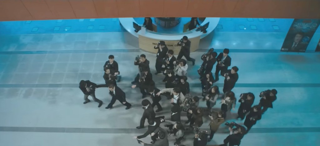 Choi manages to save Lee from the kidnappers in a riveting car chase scene featuring many impressive stunts. Soon after this, Lee and Choi appear on a debate on a local TV station to debate each other and discuss the case publicly.