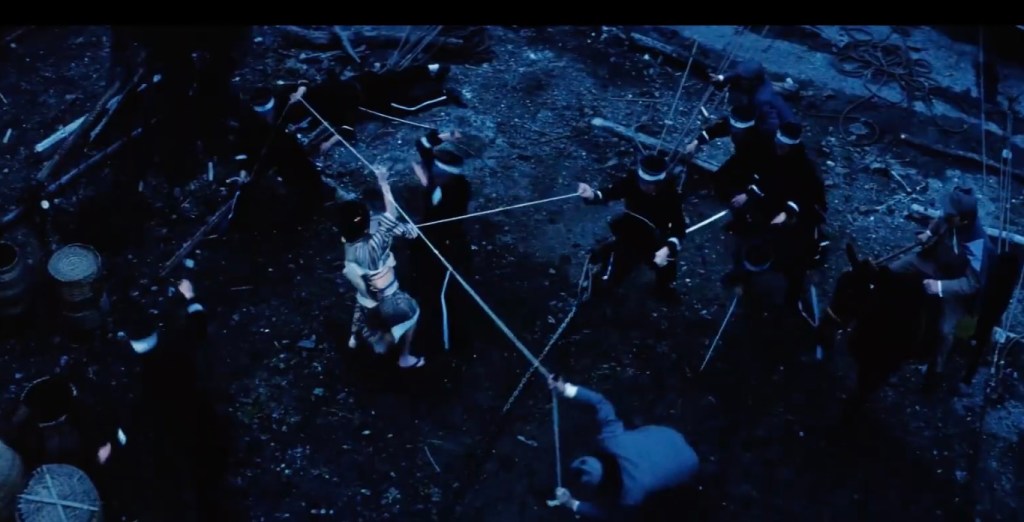 In response, Kikui traps Yuki in his mansion and unleashes hellish devastation on the slum dwellers. It is now up to Yuki to escape and seek retribution. The climax turns out to be a clichéd action scene as Yuki hacks her way to victory. To the viewer, it appears as a pointless exercise, after all of Yuki’s efforts in procuring the document earlier and then at the end, having no one around to celebrate her vengeance.
