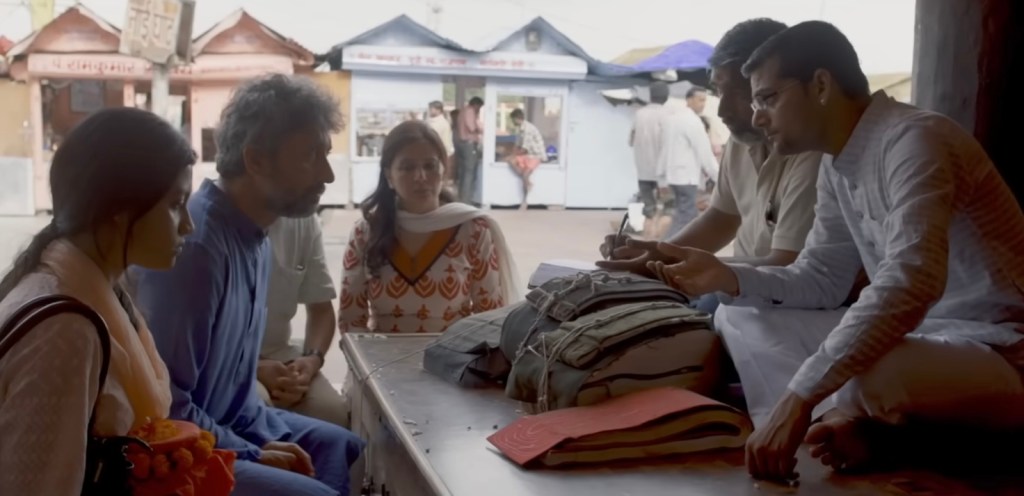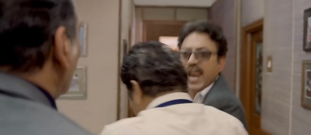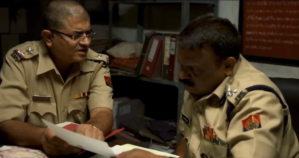 Officer Chaurasia (Gajraj Rao) and his team arrive at the scene and conduct a completely botched investigation. At first, after a brief interrogation of Shruti’s parents, Nutan (Konkona Sen Sharma) and Ramesh (Neeraj Kabi), and with the absence of Khempal, the Tandons’ man-servant, Chaurasia concludes that Khempal is the murderer. Kanhaiya, Ramesh’s assistant, convinces Chaurasia that Khempal was having an illicit affair with the late Shruti.