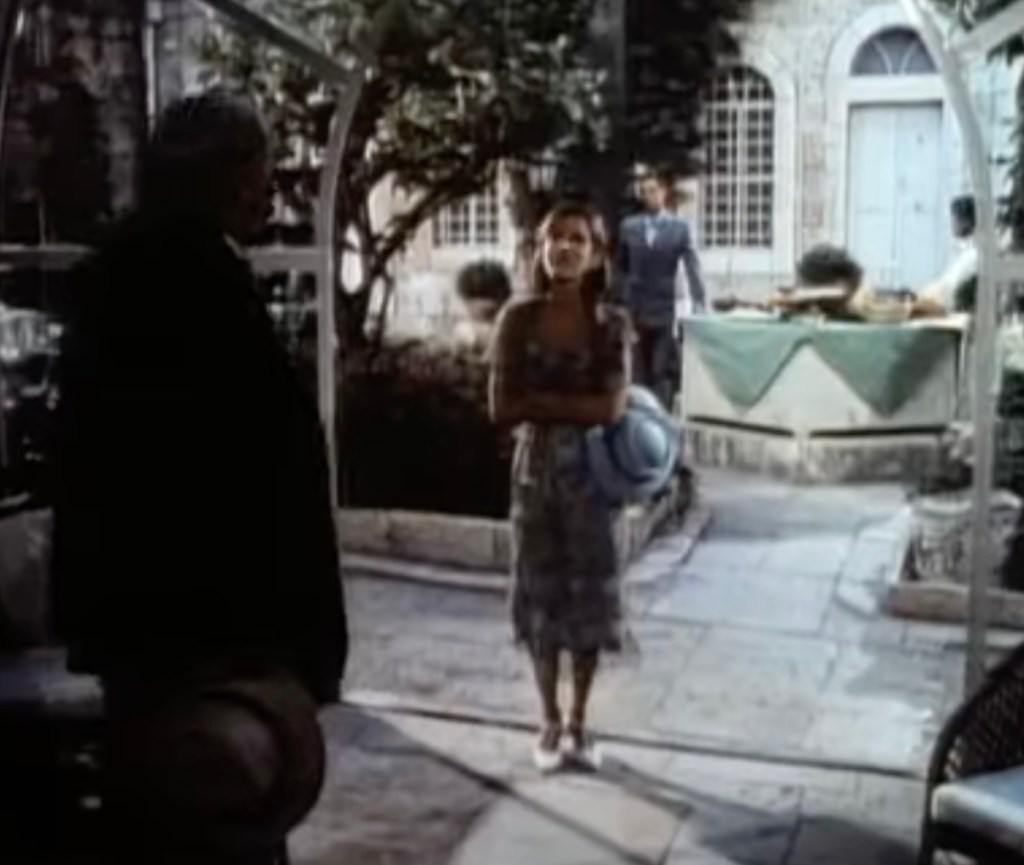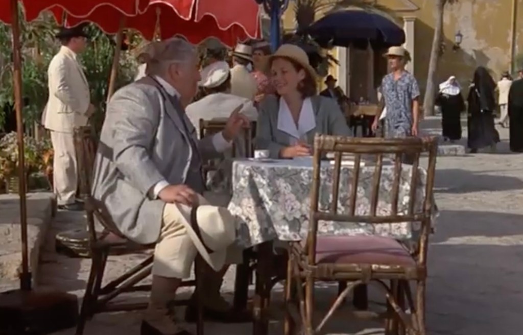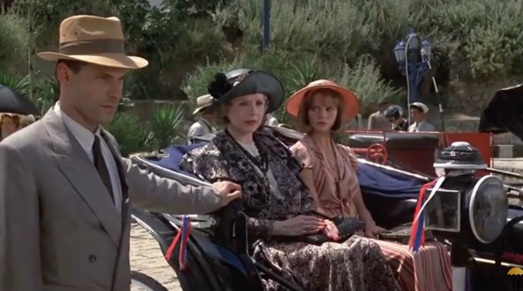 Pretending to be a caring mother to her stepchildren, she takes them, along with Nadine (Carrie Fisher), Lennox’s wife, on a trip to Europe and Israel. Her stepchildren see through her charade and hate her all the more for it. The Boyntons make a stopover in Trieste, Italy, where they board a ship to Israel. Hercule Poirot, a young doctor named Sarah King (Jenny Seagrove), and Lady Westholme, an acquaintance of Emily, also join them on the trip. Sarah and Raymond are attracted to one another, which does not sit well with Emily. Sarah soon develops a dislike for Emily. To make matters worse for Emily, Cope, who is having a secret affair with Nadine, also joins them on the ship.