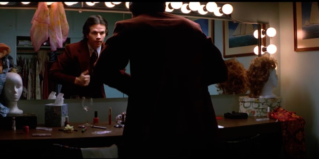 Eddie (Mark Wahlberg), a teenager, works at a nightclub, where he is spotted by Jack Horner (Burt Reynolds), an adult filmmaker. It’s the late 70s, a time before VCRs had become common in households. Jack takes Eddie to his luxurious home in the San Fernando Valley, watches him have sex with one of his starlets, Rollergirl (Heather Graham), and then offers him a role as an actor in his films. At Jack’s house, Eddie also meets Maggie (Julianne Moore), Jack’s live-in girlfriend.