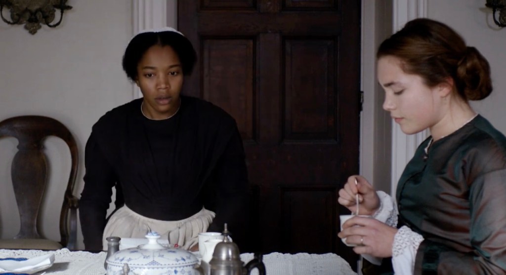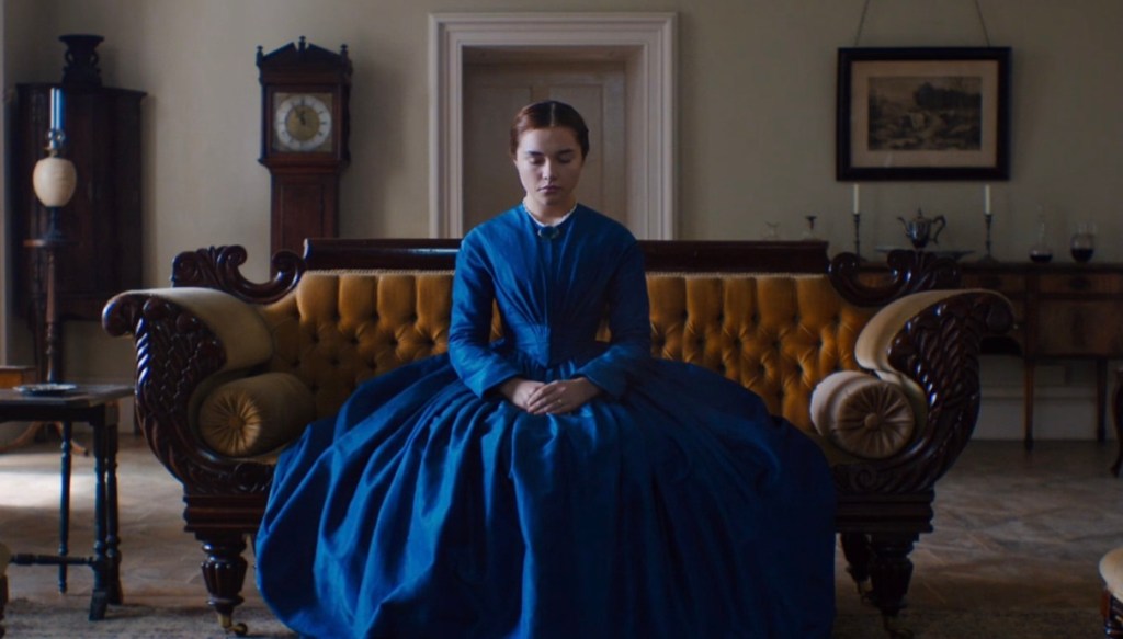Florence Pugh plays Katherine Lester, a young woman trapped in a loveless marriage to Alexander (Paul Hilton), an impotent and abusive landowner. They live with Alexander’s equally cruel father, Boris (Christopher Fairbank), in a cold, sparsely furnished mansion in the North English countryside—a setting that reflects the emotional emptiness of its inhabitants.